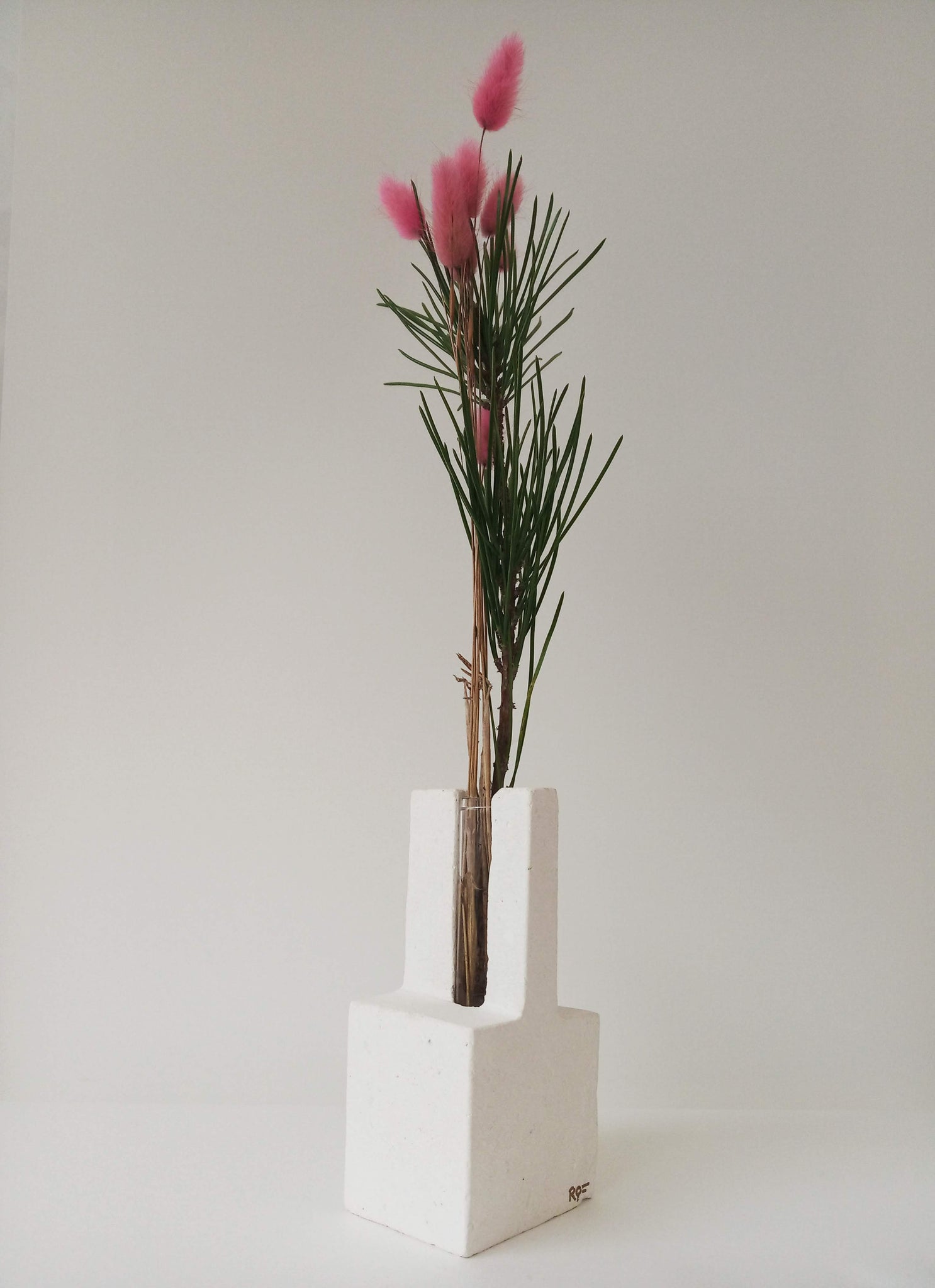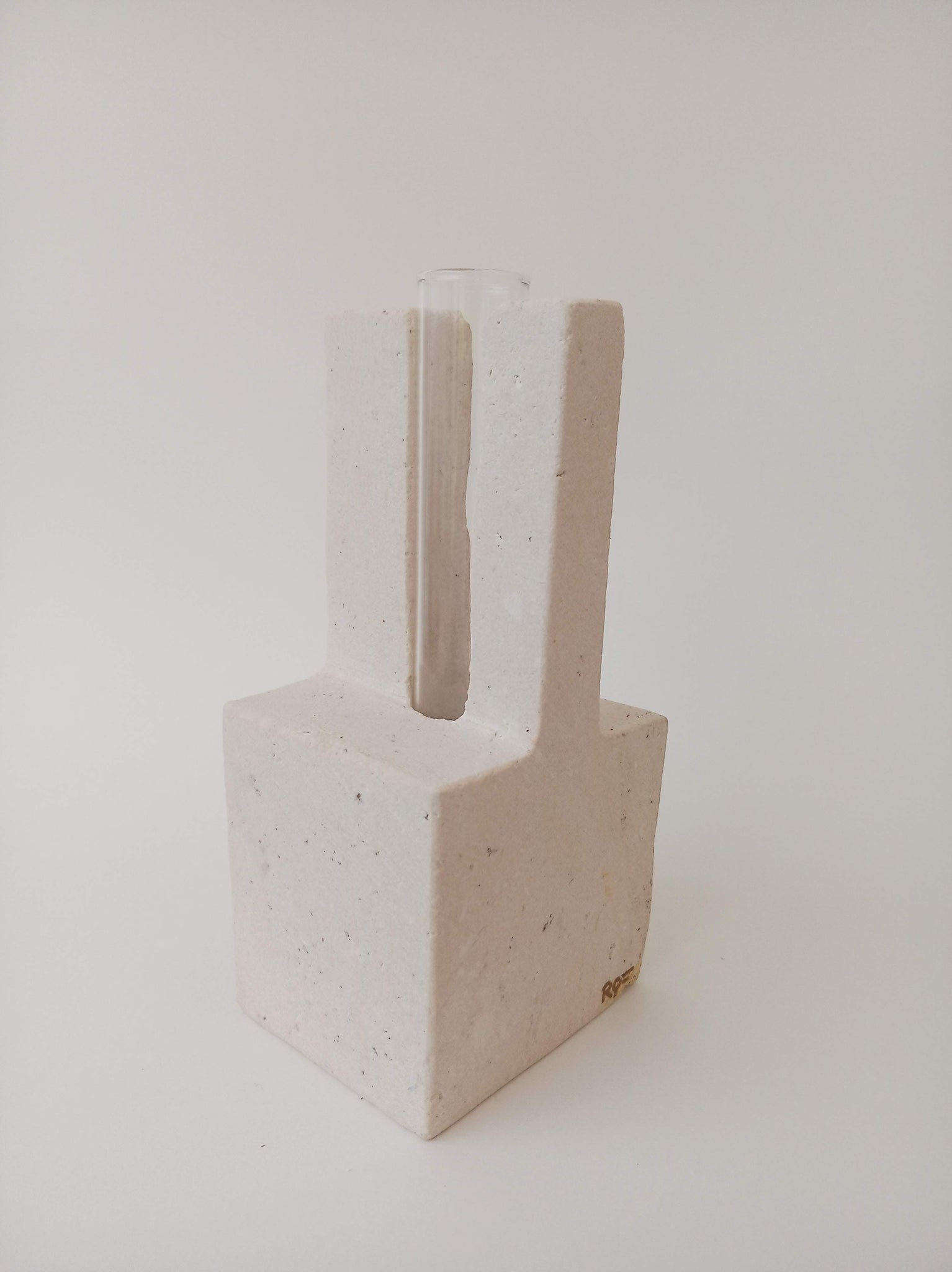 Escultura florero de estilo minimalista y espíritu oriental.