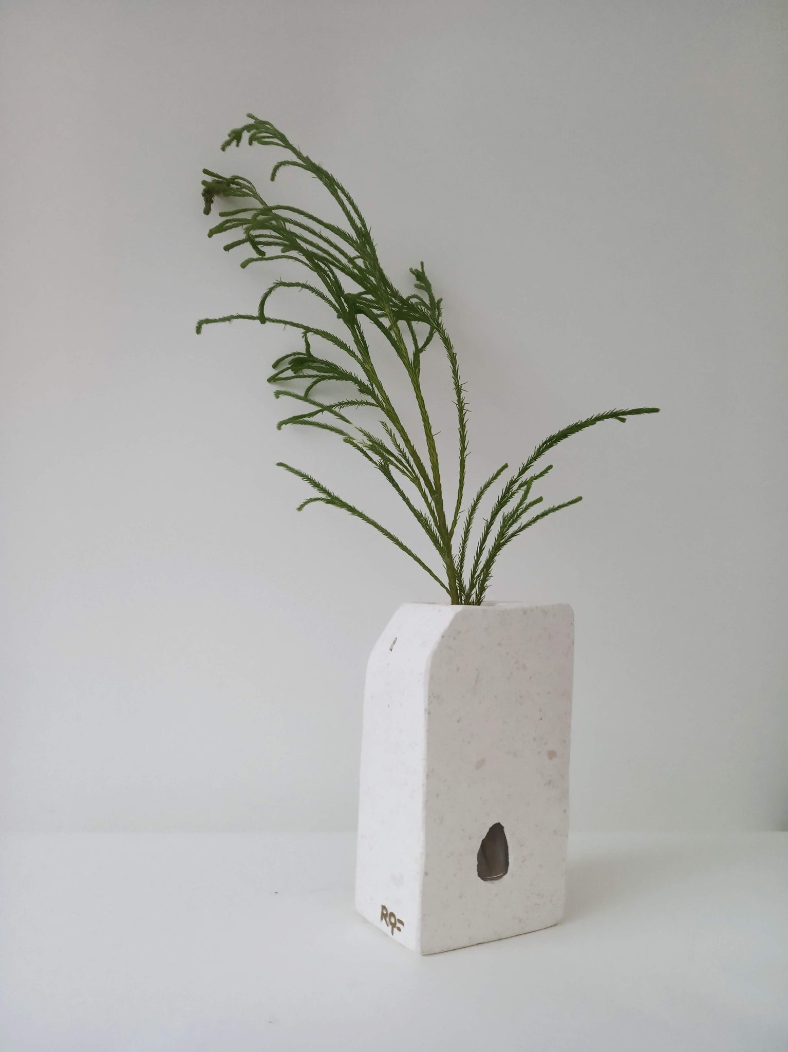Escultura florero de estilo minimalista y espíritu oriental.