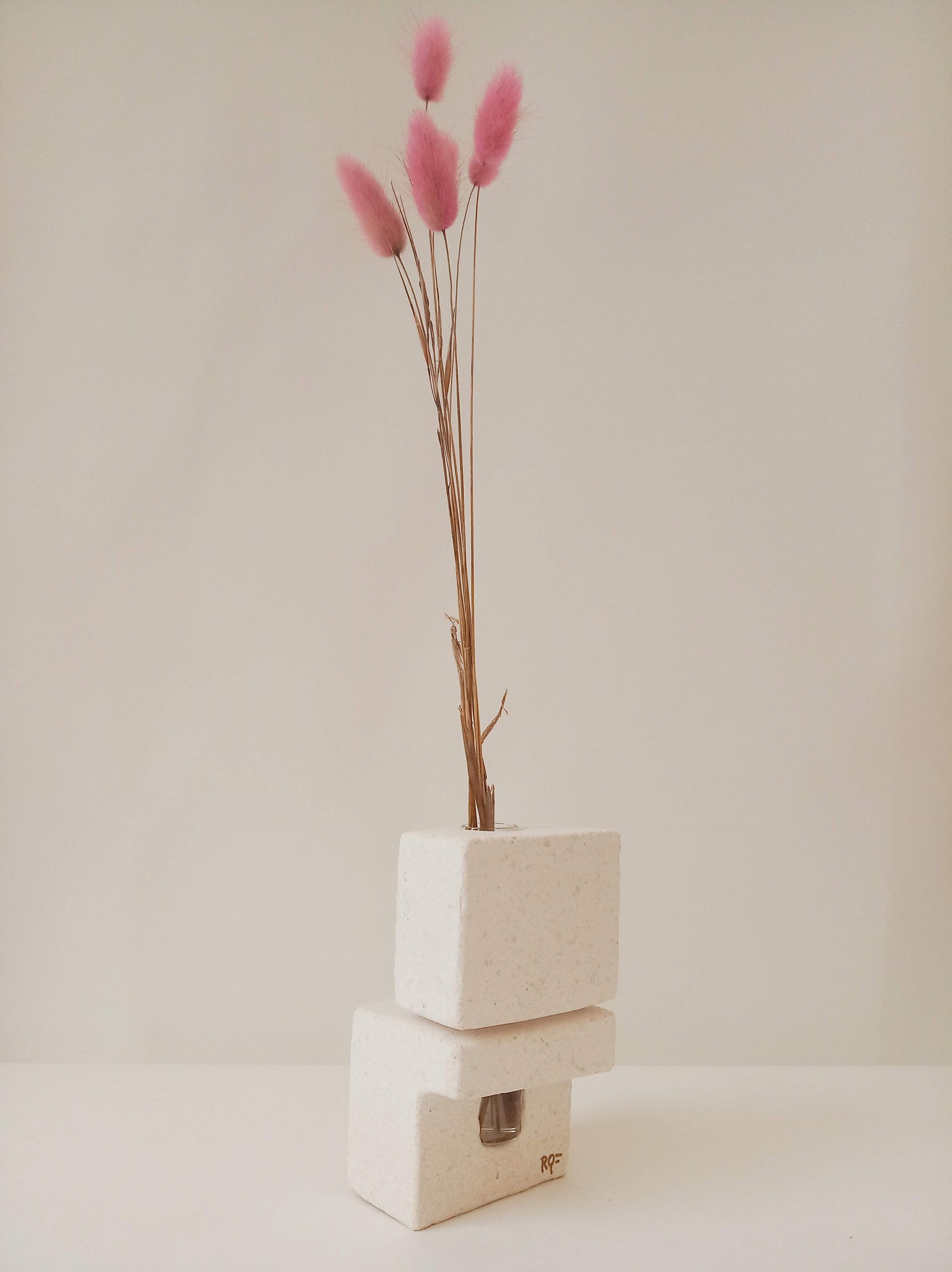Escultura florero de estilo minimalista y espíritu oriental.