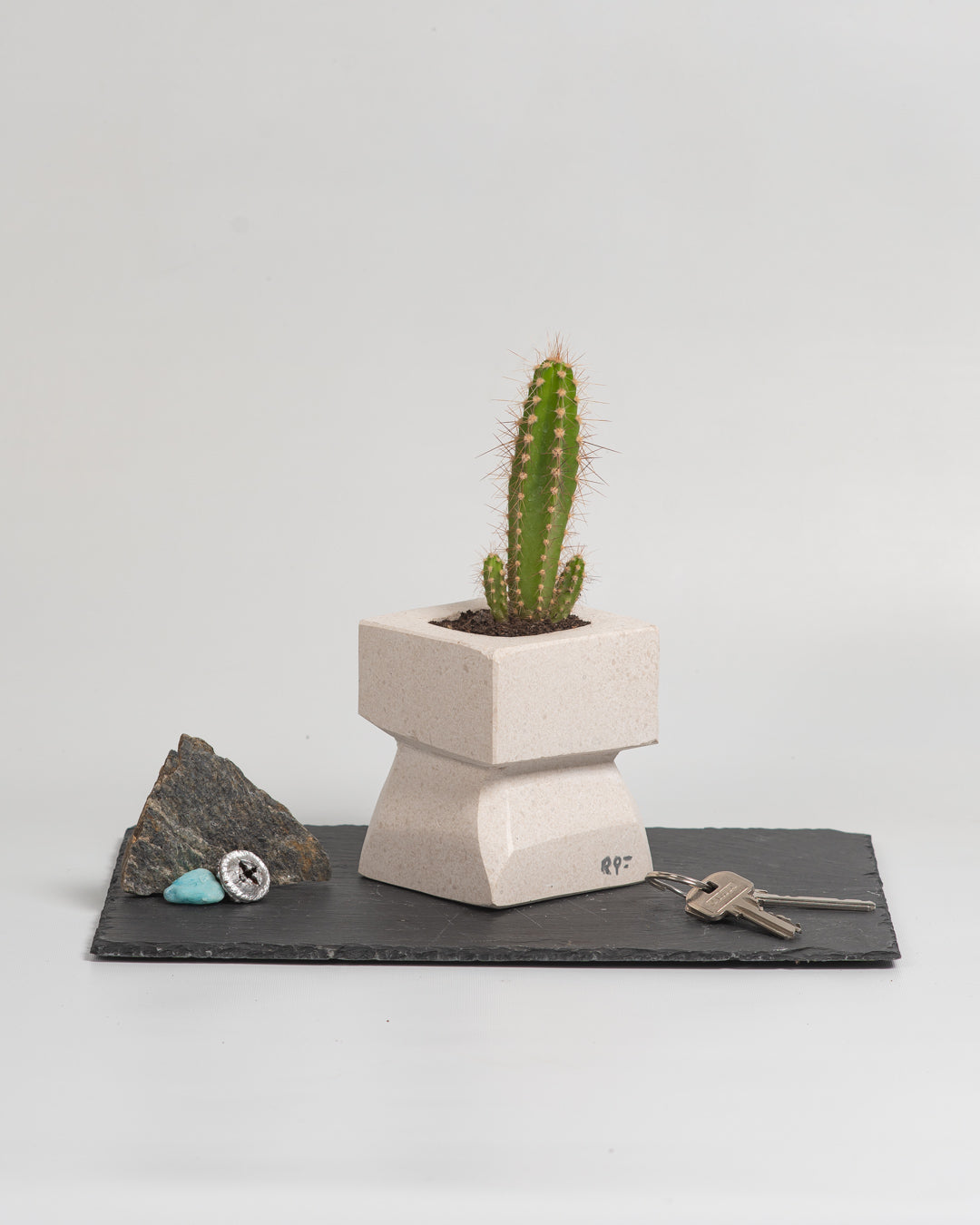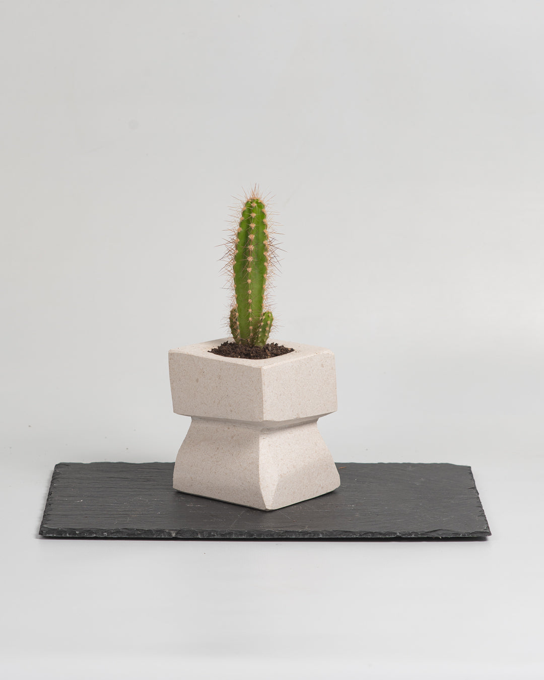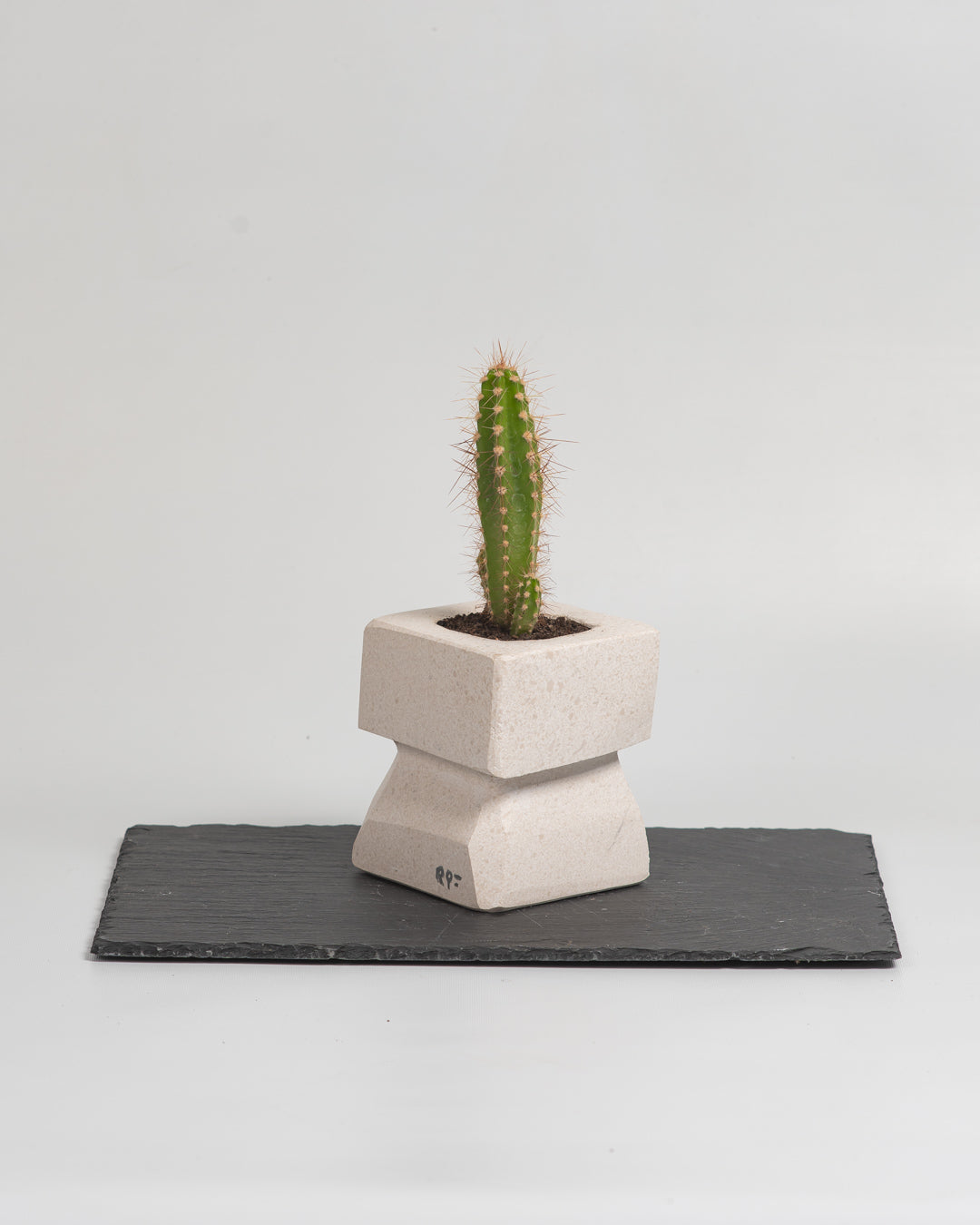 Maceta realizada de forma artesanal en piedra natural, es una pieza única y exclusiva.